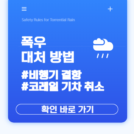 “호우 땐 안내만 믿고, 패닉은 금물! 모든 정보는 코레일 공식 앱/홈피에서 실시간으로 업데이트돼요”